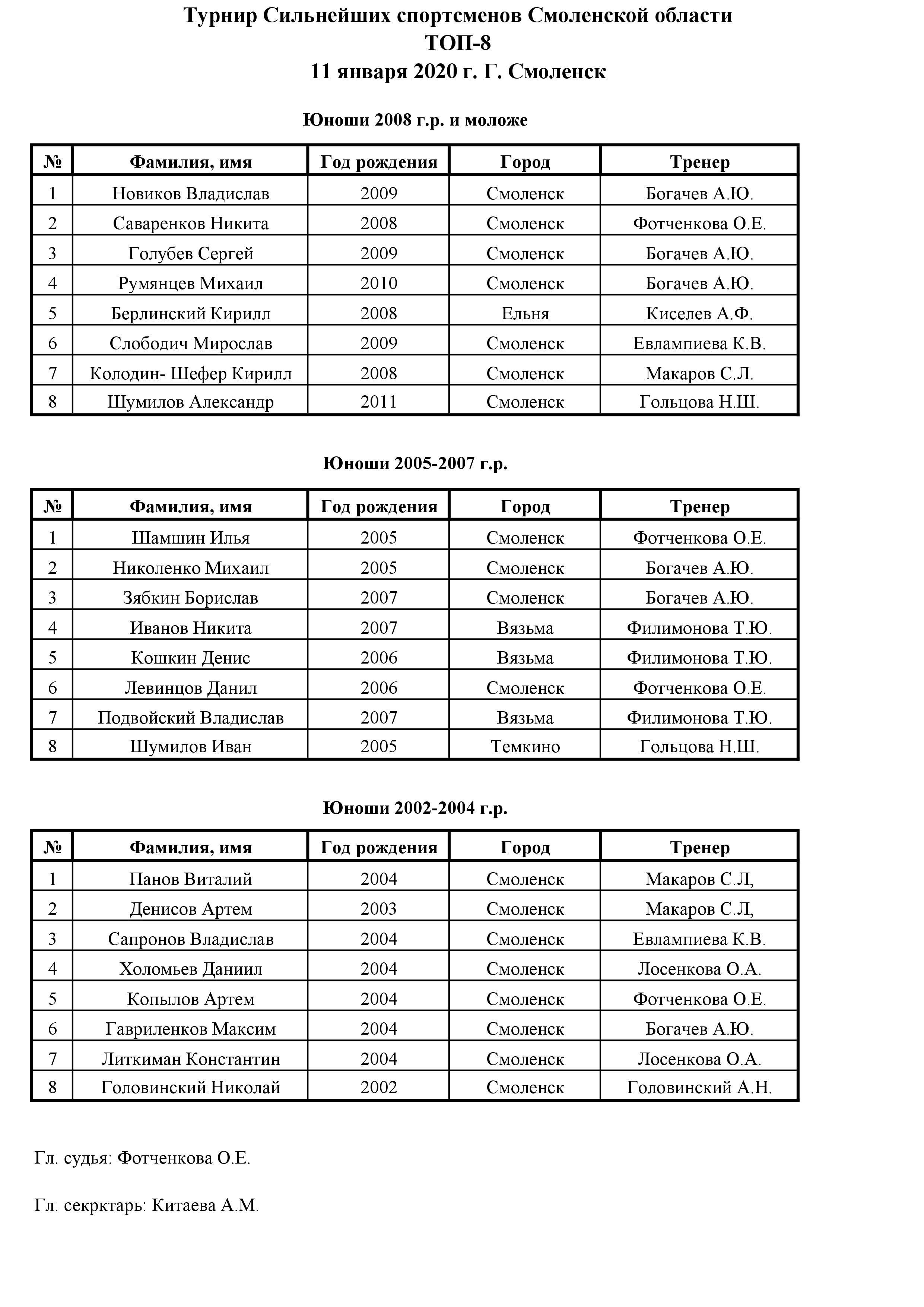Подача заявок начинается за 30 минут до начала соревнований. Просьба капитанов команд не опаздывать к началу жеребьевки. При опоздании сообщать гл. судье по телефону Фотченкова О.Е. 8-950-708-73-59.
