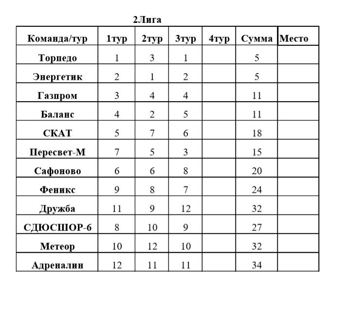 1 смена - 2 лига.