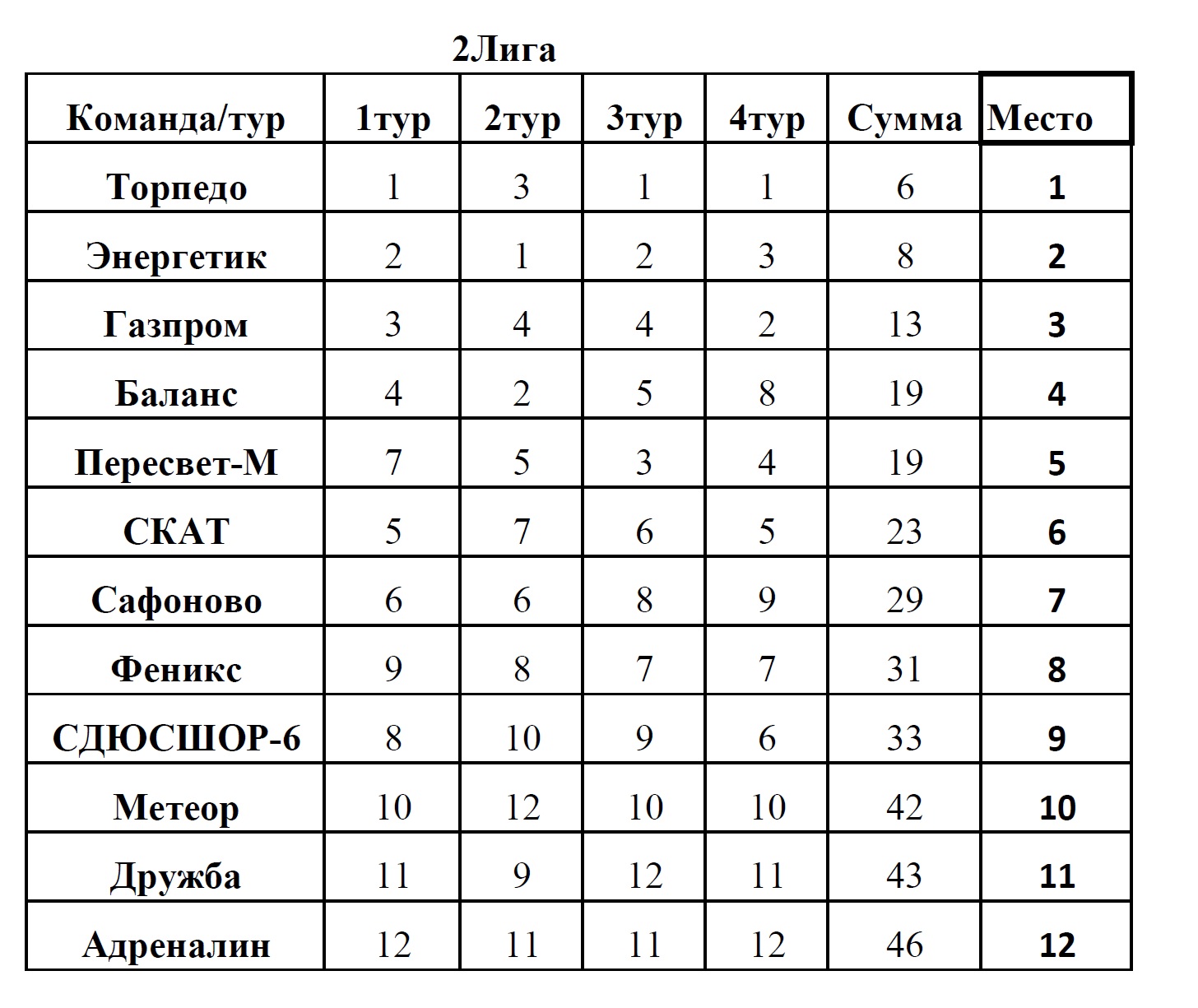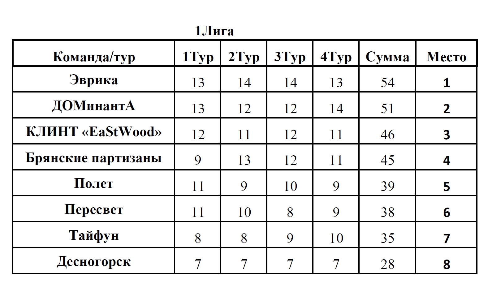 На протяжении четырех туров команды вели упорную борьбу и в итоге места распределились следующим образом: