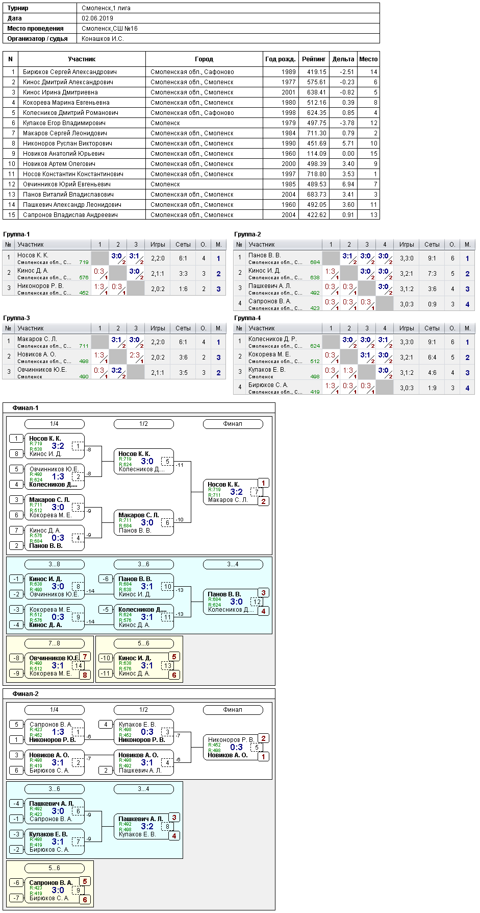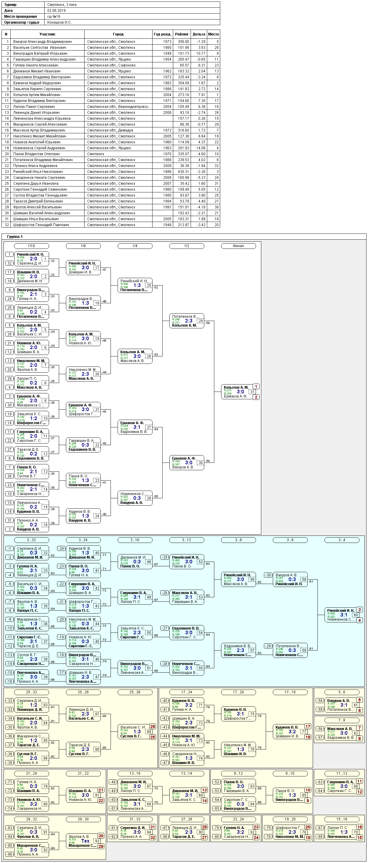 1 место - Носов Константин 2 место - Макаров Сергей 3 место - Панов Виталий Полные результаты 1 лиги | Результаты 3 лиги :