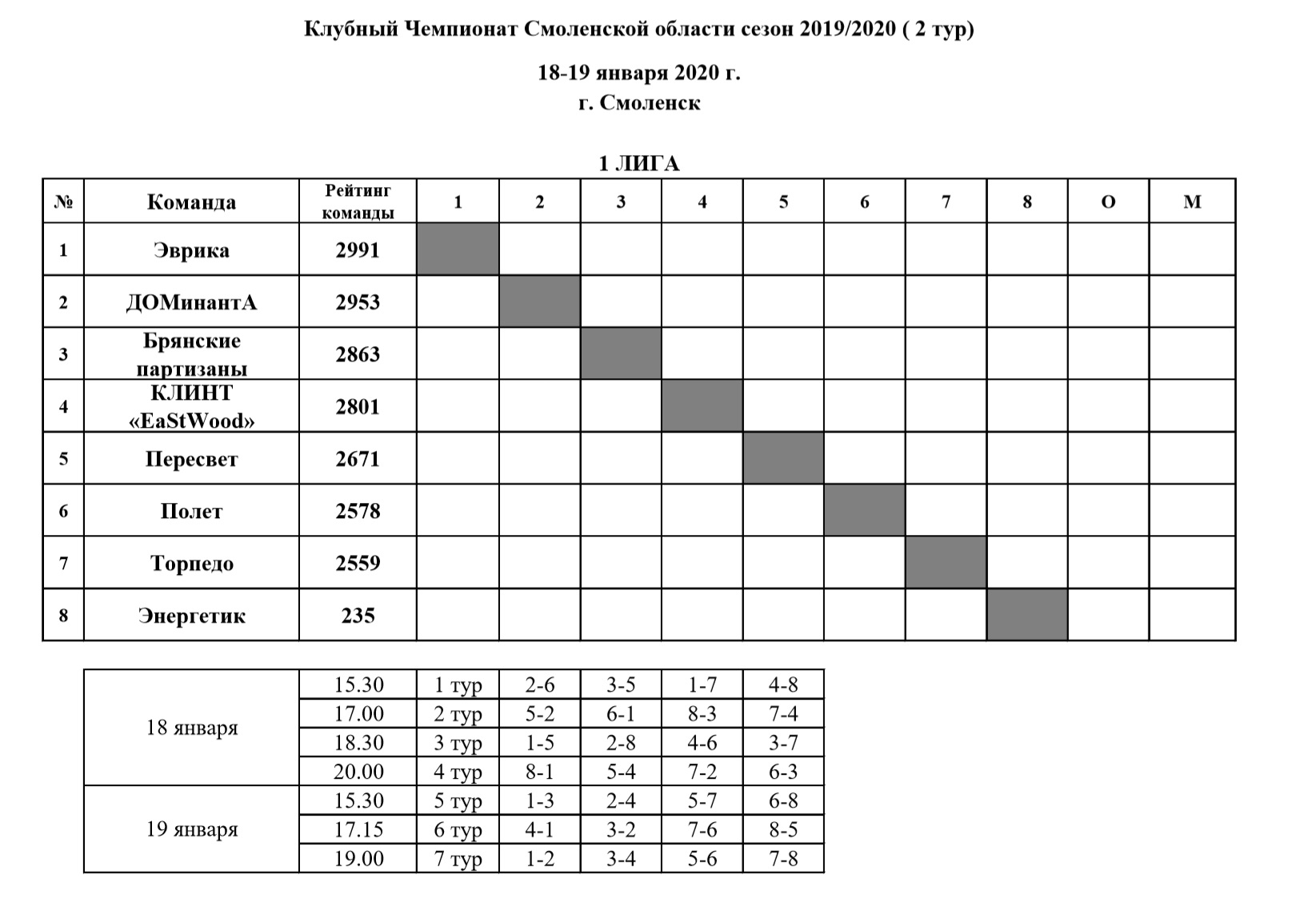 18-19 января 2020г. в г. Смоленске в спортивном зале ПЧ-7 по адресу ул. Попова д. 21 состоится 2 тур Клубного Чемпионата Смоленской области.
