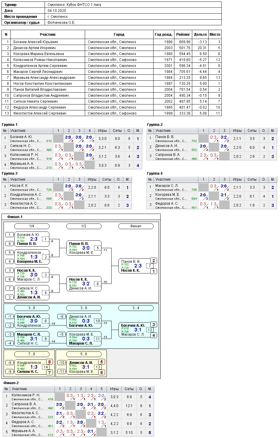 4 октября 2020г. в г. Смоленске состоялся Кубок ФНТСО 1 и 3 лига.