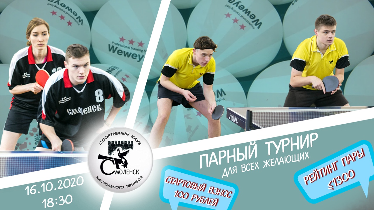 16 октября 2020 года в клубе настольного тенниса "Смоленск" по адресу Трамвайный проезд, д.8 3 этаж состоится парный турнир.В турнире могут принять участие все желающие не зависимо от подготовки, возраста и пола.