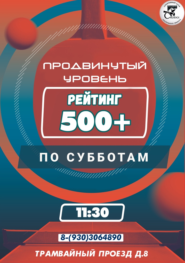 17 октября 2020 года в клубе настольного тенниса "Смоленск" по адресу: Трамвайный проезд д. 8, 3 этаж, состоится турнир " Продвинутый уровень".Рейтинг участников от 500 очков и выше.