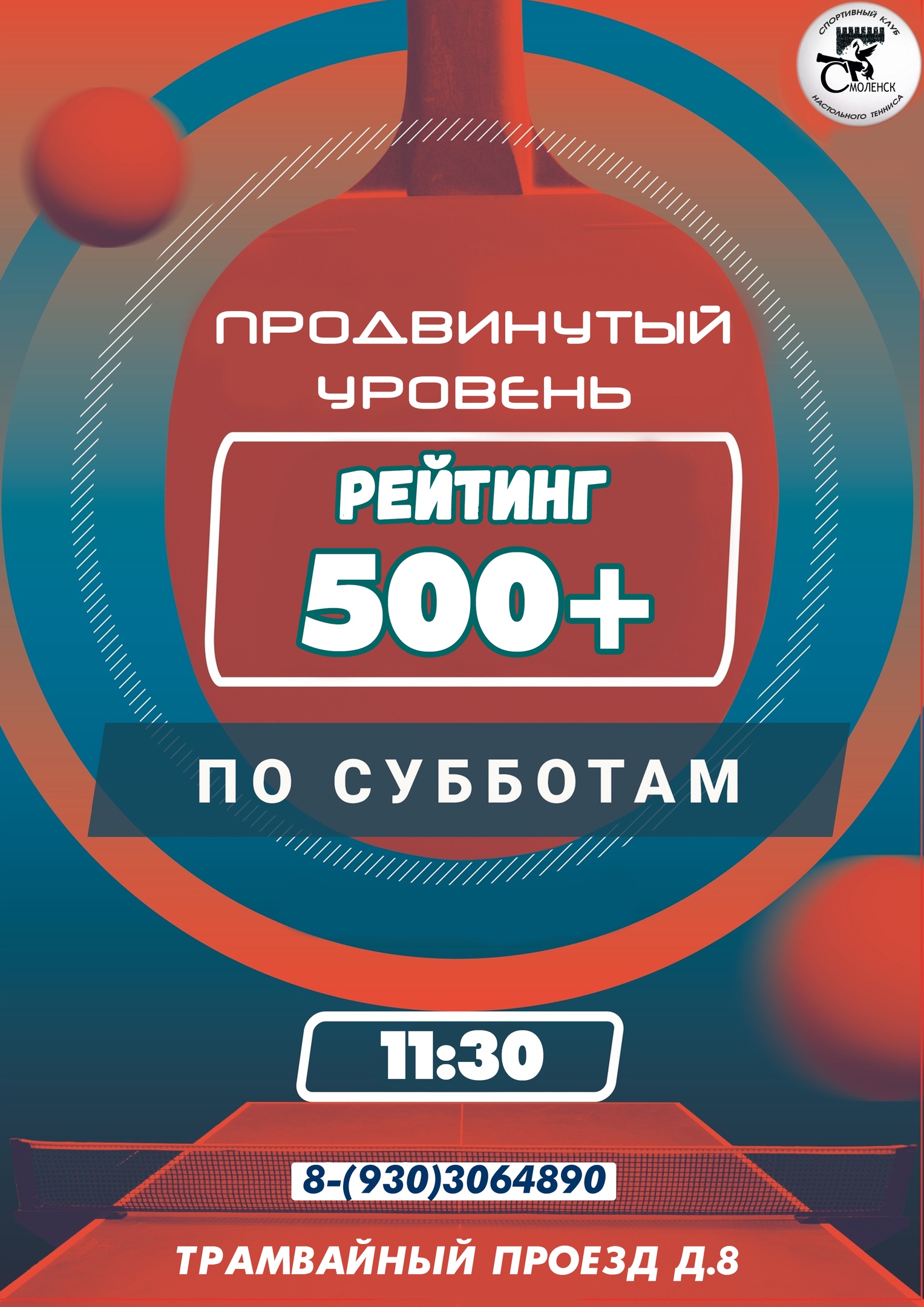 7 ноября 2020 г. в клубе настольного тенниса "Смоленск" состоится турнир "Продвинутый уровень".Регистрация участников 11.00