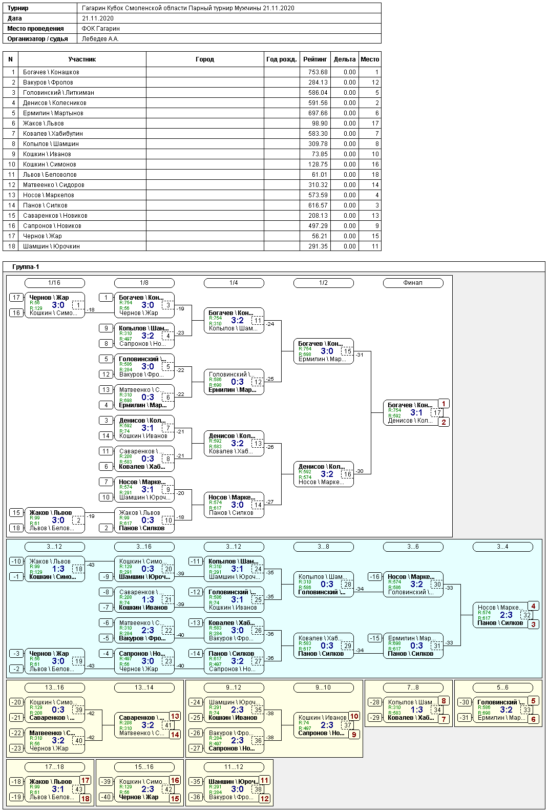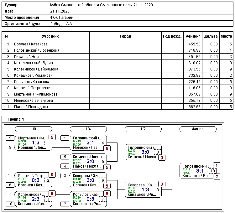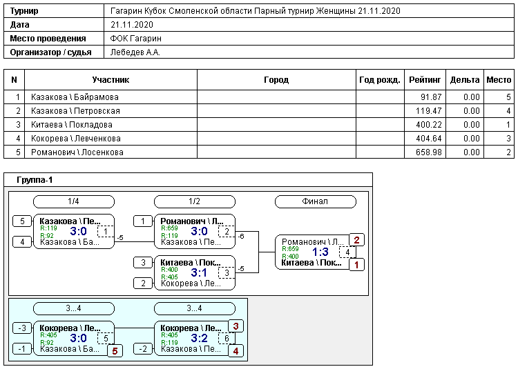 Результаты турнира: