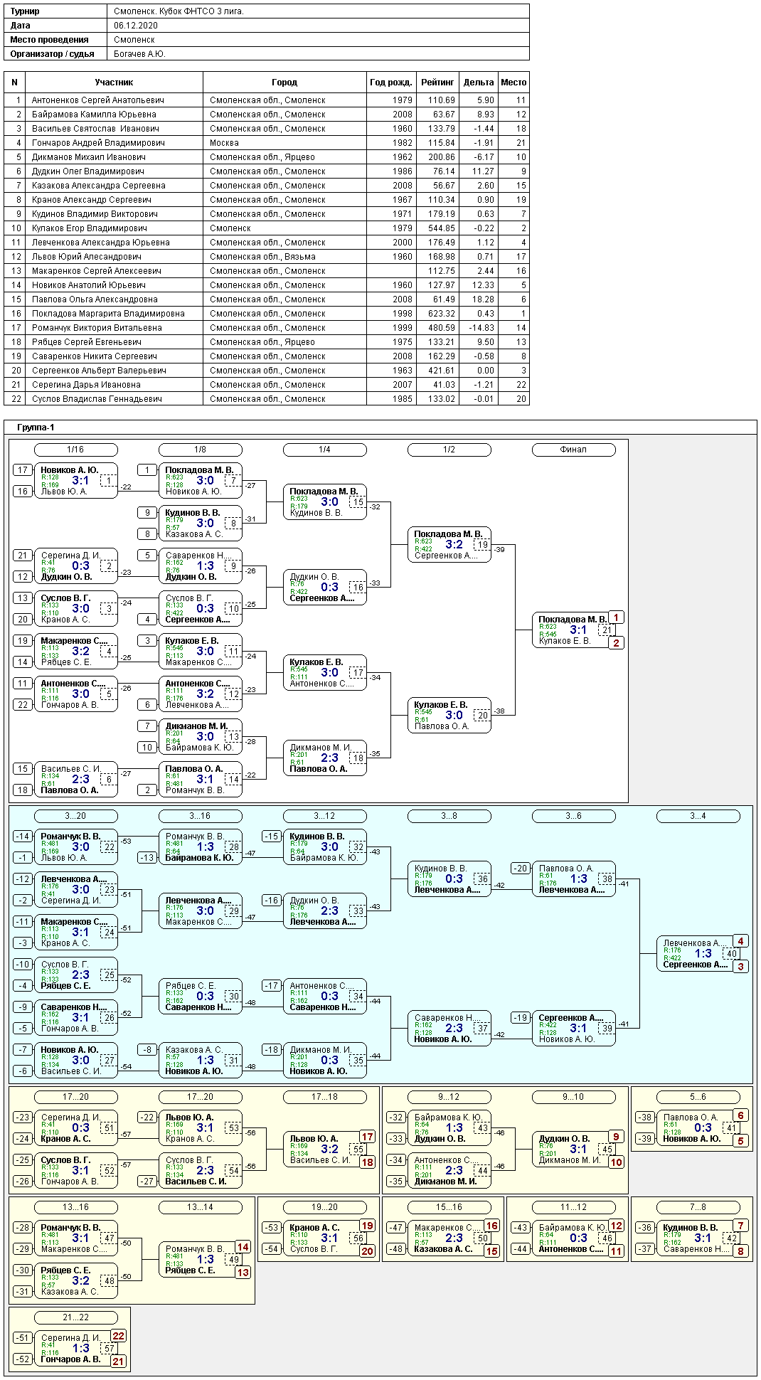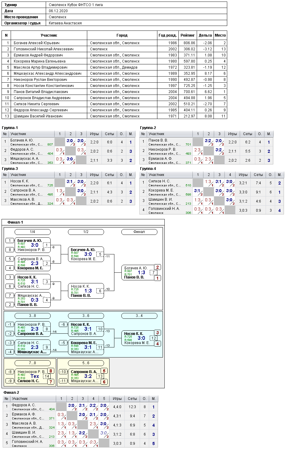 6 декабря в спортивном зале СШ им. М.В Николина состоялся Кубок ФНТСО 1 и 3 лига.В турнире приняли участие 35 спортсменов из Смоленска, Ярцева, Вязьмы.