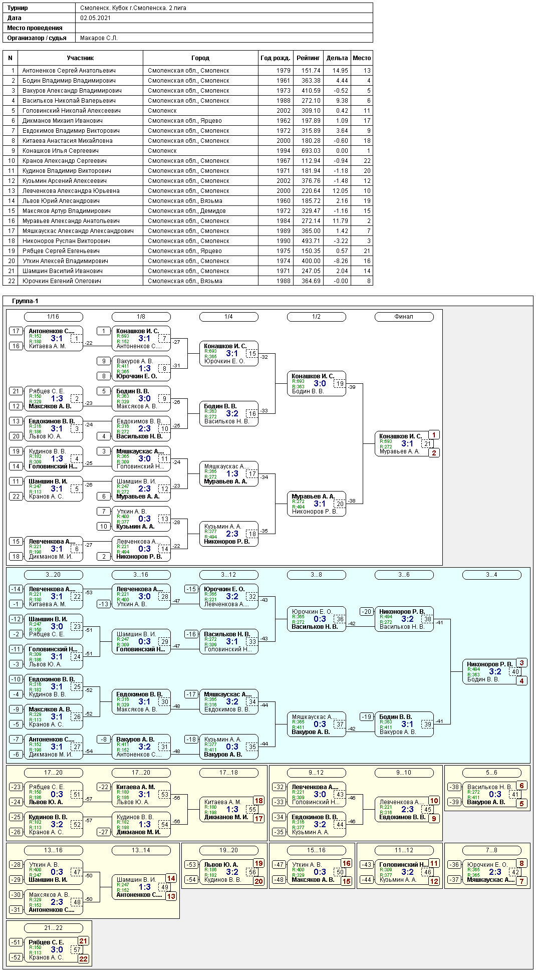 Следующие туры открытого Кубка г.Смоленска состоятся 6 июня 2021 г.: