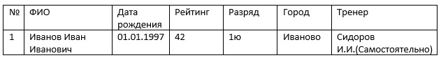 Заявку можно подать как на электронную почту info@tennis67.ru, а также напрямую зам.главного секретаря Анастасии Китаевой личным сообщением WhatsApp 8-930-306-48-90 Заявка подается по форме приведенной ниже с указанием Фамилии, Имени, Отчества, полной даты рождения, разряда, города, тренера, рейтинга ФНТР (для детей), рейтинга TTW (для взрослых).