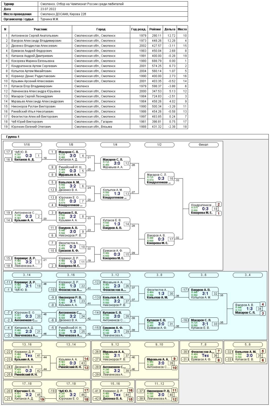 Результаты отбора на ЧР среди любителей