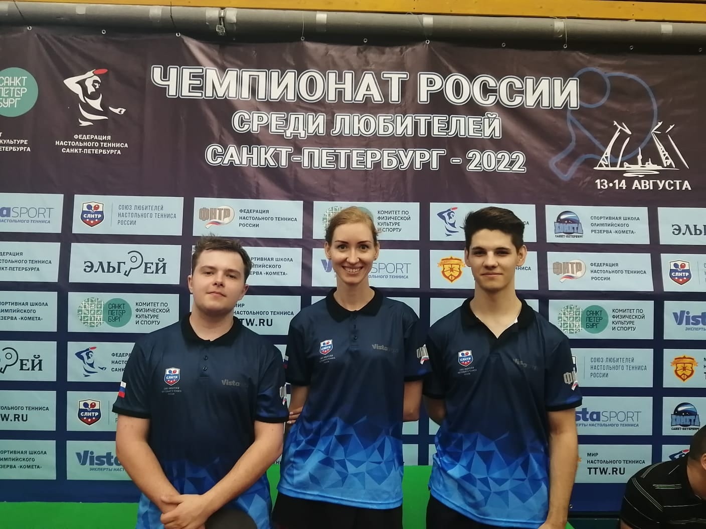 С 13 по 14 августа 2022 г. в г.Санкт-Петербург проходил Чемпионат России по настольному теннису среди любителей.Команду Смоленской области на этом масштабном мероприятии представляли: Кокорева Марина, Кондратенков Артем, Копылов Артем.