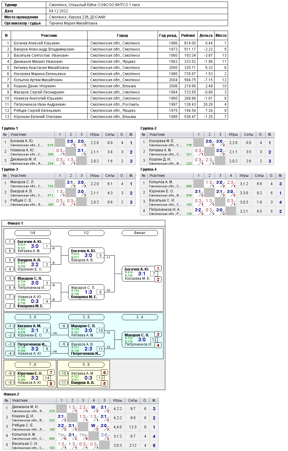 4 декабря 2022 г. в КНТ "Смоленск " прошли заключительные этапы 2022 г. Кубка ФНТСО 1 и 3 лига.Сильнейшими в 1 лиге стали: