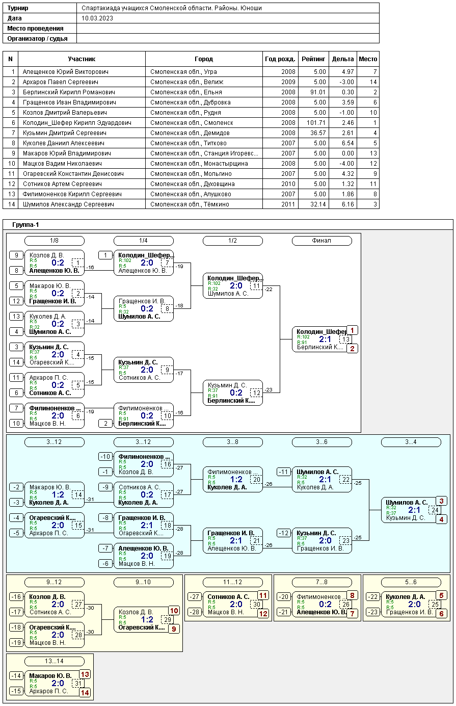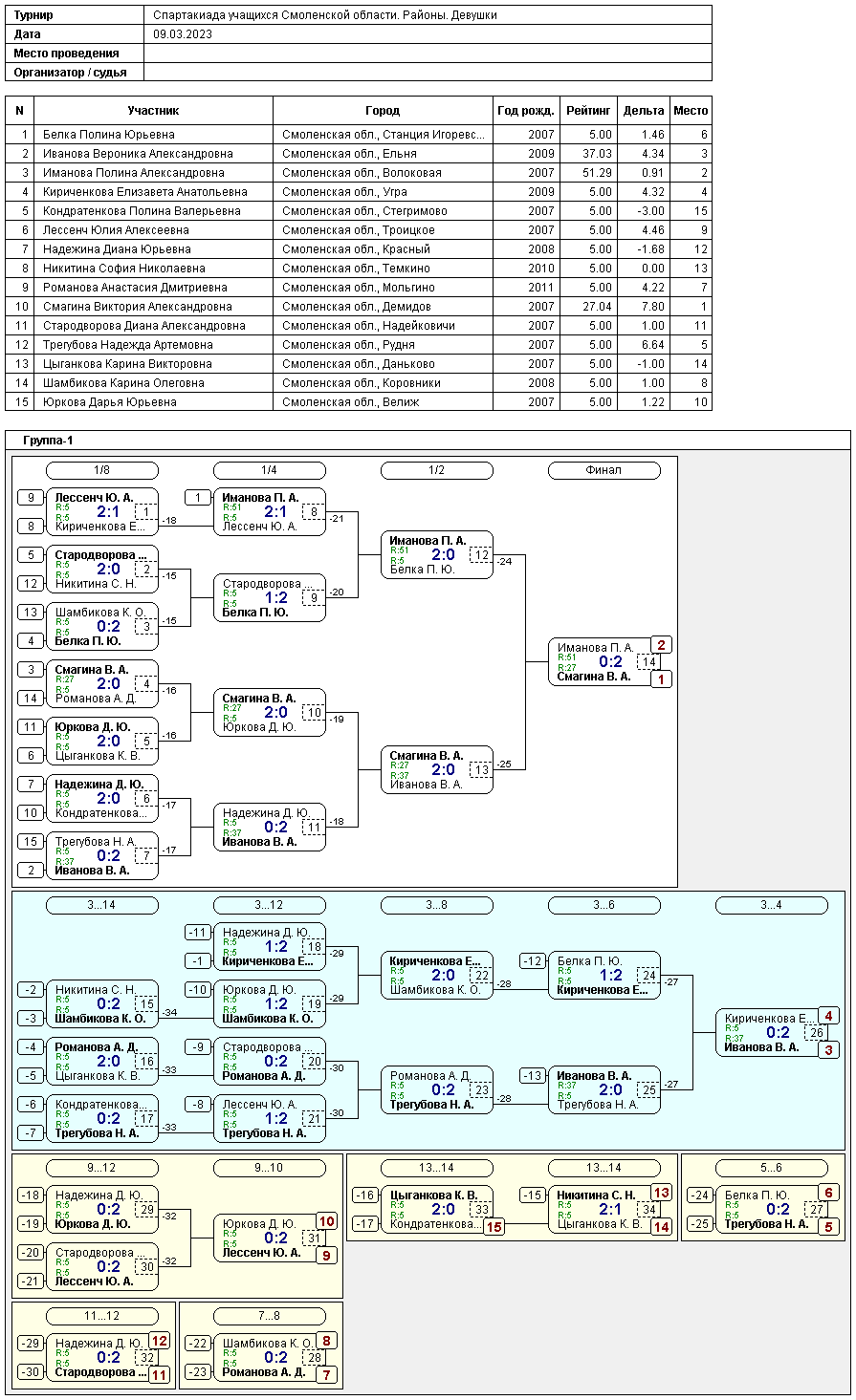 Здесь юноши и девушки играли личные встречи, а команда-победительница определялась по сумме мест.