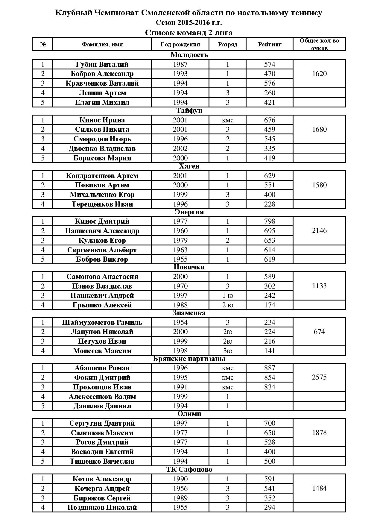 Публикуем окончательные списки команд Клубного Чемпионата Смоленской области. С данного момента изменения в составах команд не возможно. Внести изменения теперь можно будет после проведения 2 тура.