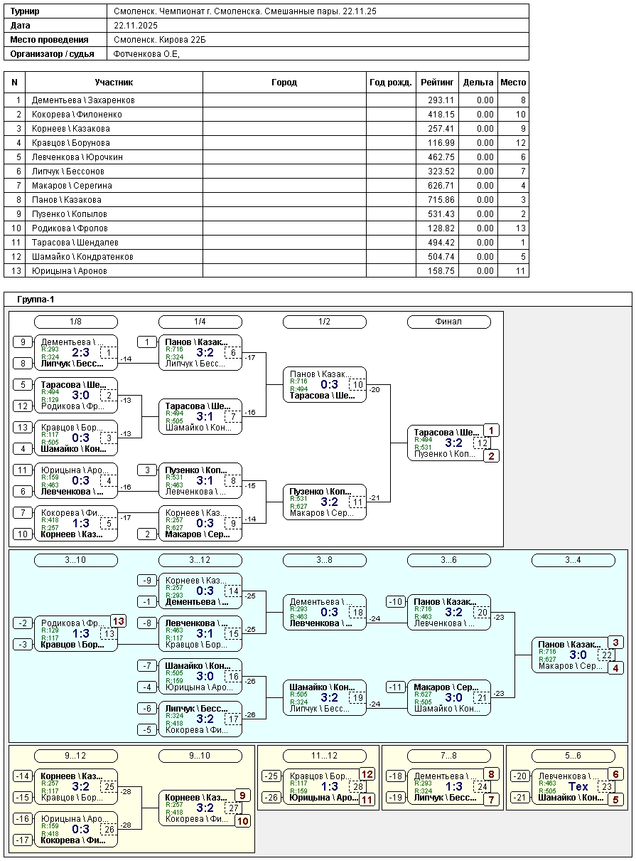 🏓 Смешанные пары: