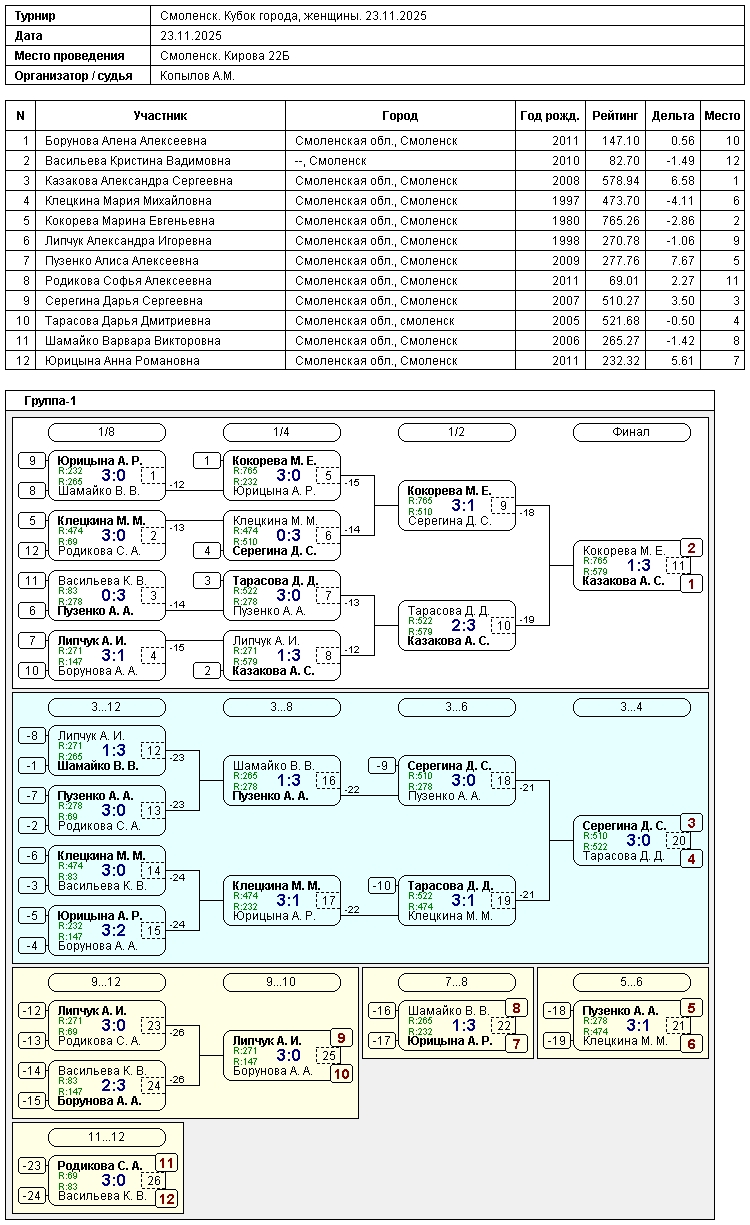 📅 22-23 ноября 2025 г. в КНТ "Смоленск" прошел Чемпионат г.Смоленска по настольному теннису.