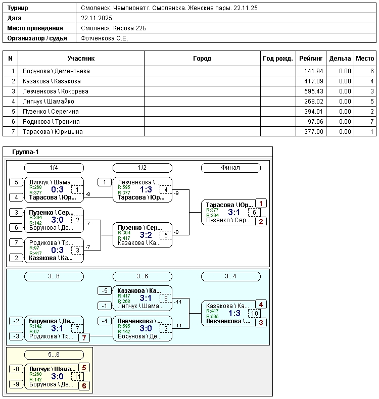 🏓 Женские пары: