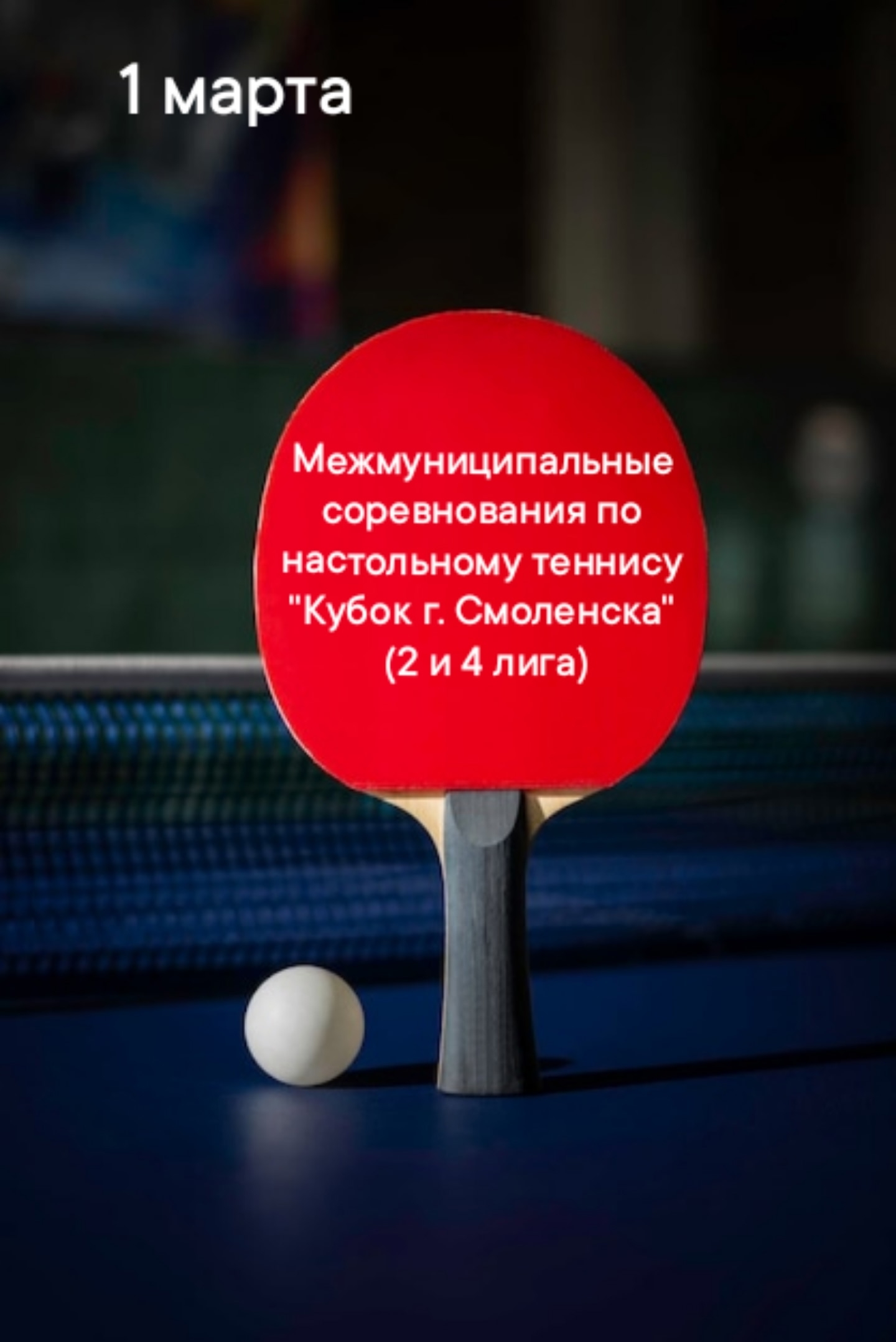 📆1 марта 2026 г., воскресенье состоятся Межмуниципальные соревнования по настольному теннису "Кубок г. Смоленска" (2 и 4 лига)