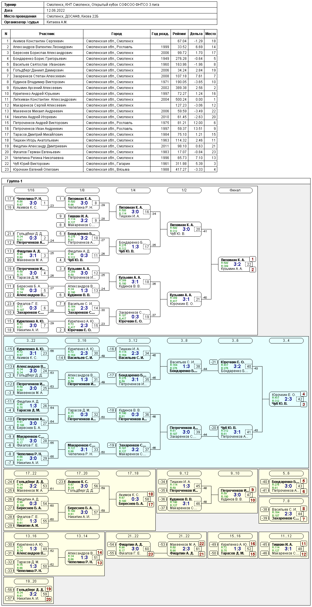 Долгожданные результаты лиг!12 июня 2022 г. в КНТ "Смоленск" состоялись очередные этапы Кубка СОФСОО ФНТСО 1 и 3 лига. В соревнованиях приняли участие 36 спортсменов из Вязьмы, Гагарина, Сафоново, Рославля, Москвы, Смоленска.