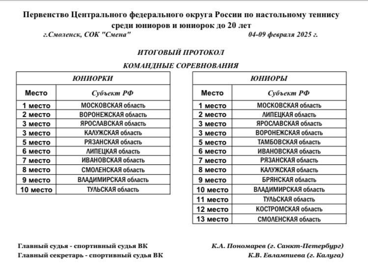 🔥 4 февраля 2025 г. в Смоленске стартовало Первенство ЦФО по настольному теннису среди юниоров и юниорок до 20 лет.👉 5 февраля состоялись командные соревнования. В соревнованиях приняли участие 13 команд юниоров и 10 команд юниорок.