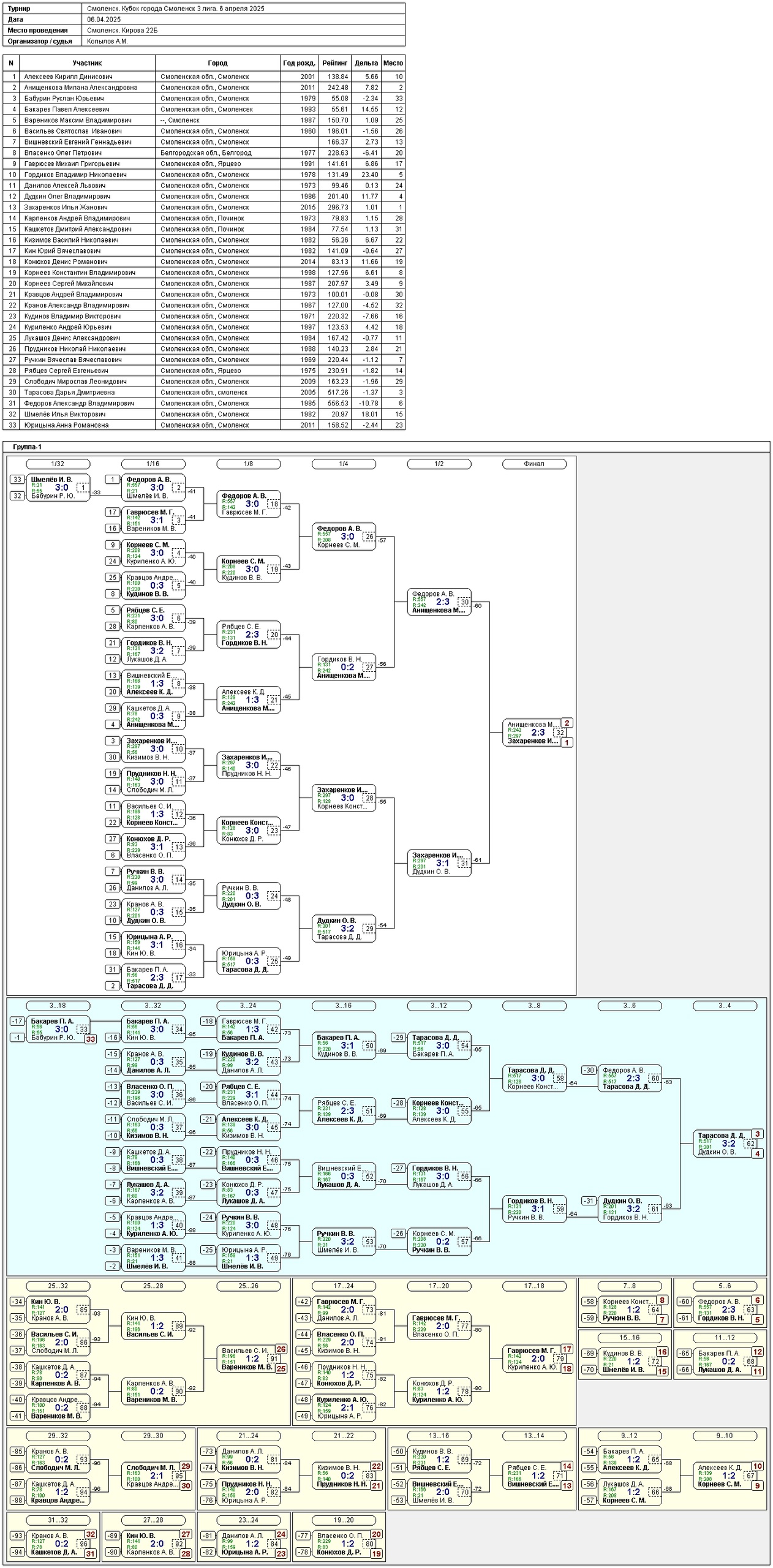 📆 6 апреля 2025 г. в нашем клубе состоялись очередные этапы кубка города Смоленск "1 и 3 лиги".