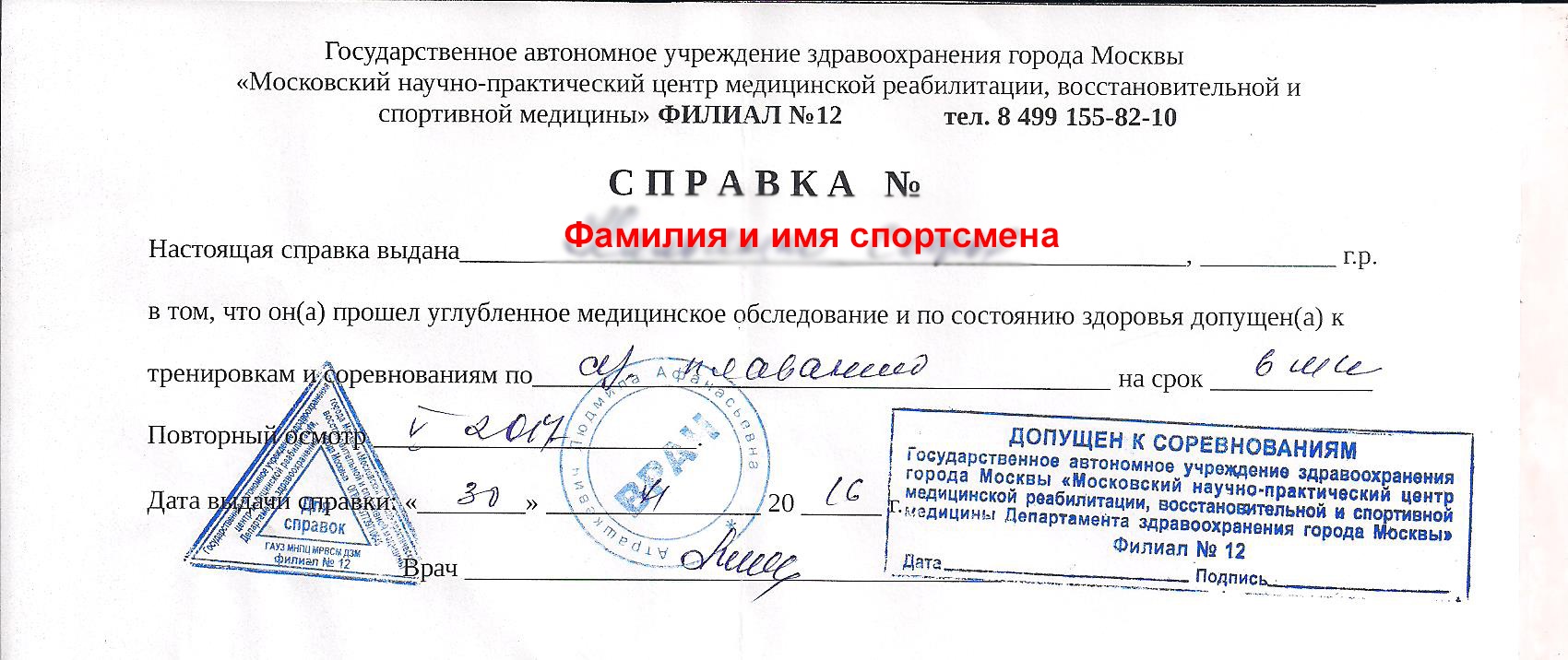 ☝️Данную справку можно получить бесплатно по месту жительства, пройдя ежегодную диспансеризацию. Либо в физкультурно-оздоровительном диспансере г.Смоленска, обратившись туда как спортсмен любитель. Спортсмены, которые участвуют в соревнованиях от спортивной организации оформляют "Заявку" с медицинским допуском врача.