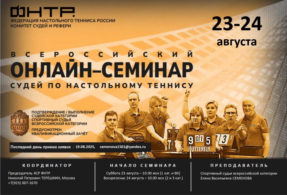📅 23-24 августа 2025 г. Федерация настольного тенниса России провела семинар по подготовке судей различного уровня с последующей сдачей квалификационного зачета.