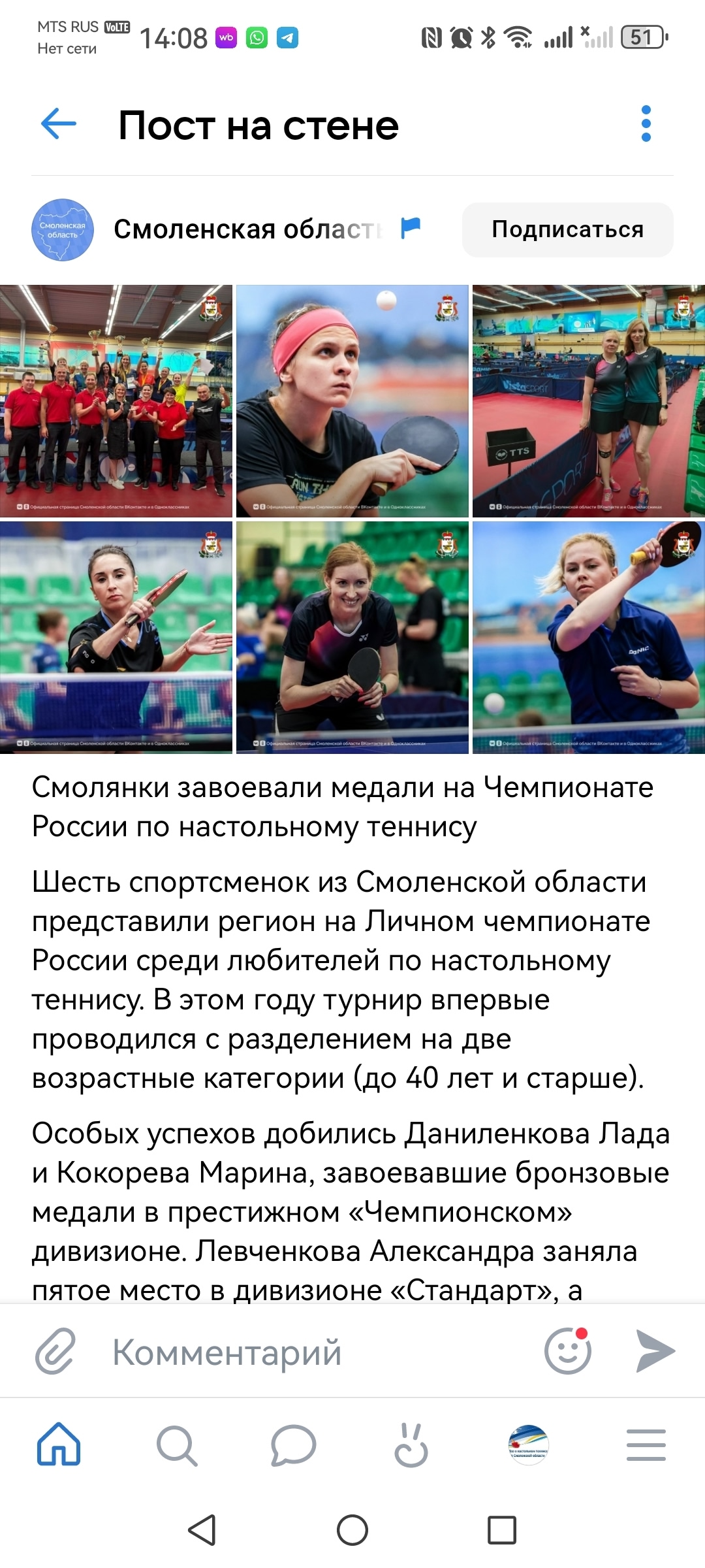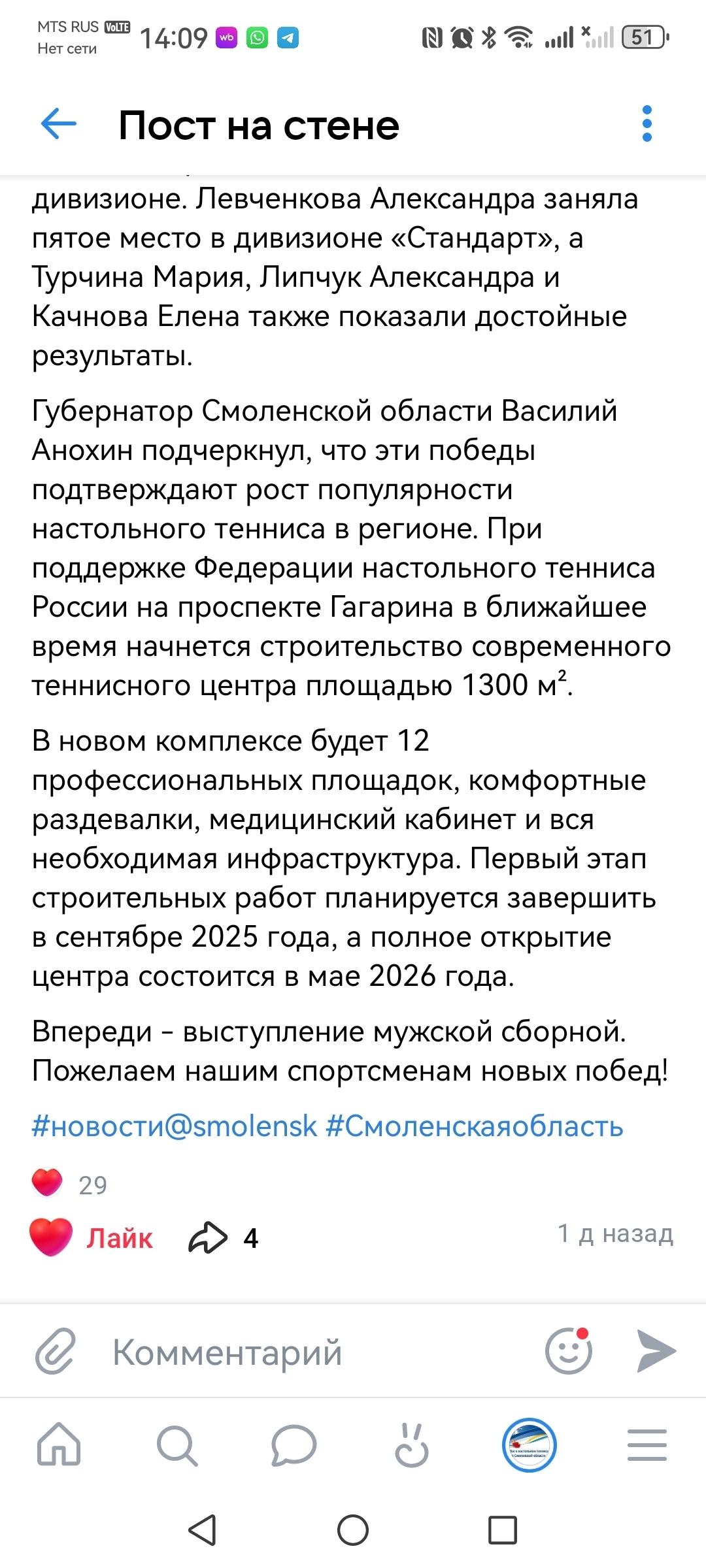 🔥 Губернатор Смоленской области Василий Анохин отметил рост популярности настольного тенниса 🏓 на Смоленщине. https://vk.com/wall-25232455_128333