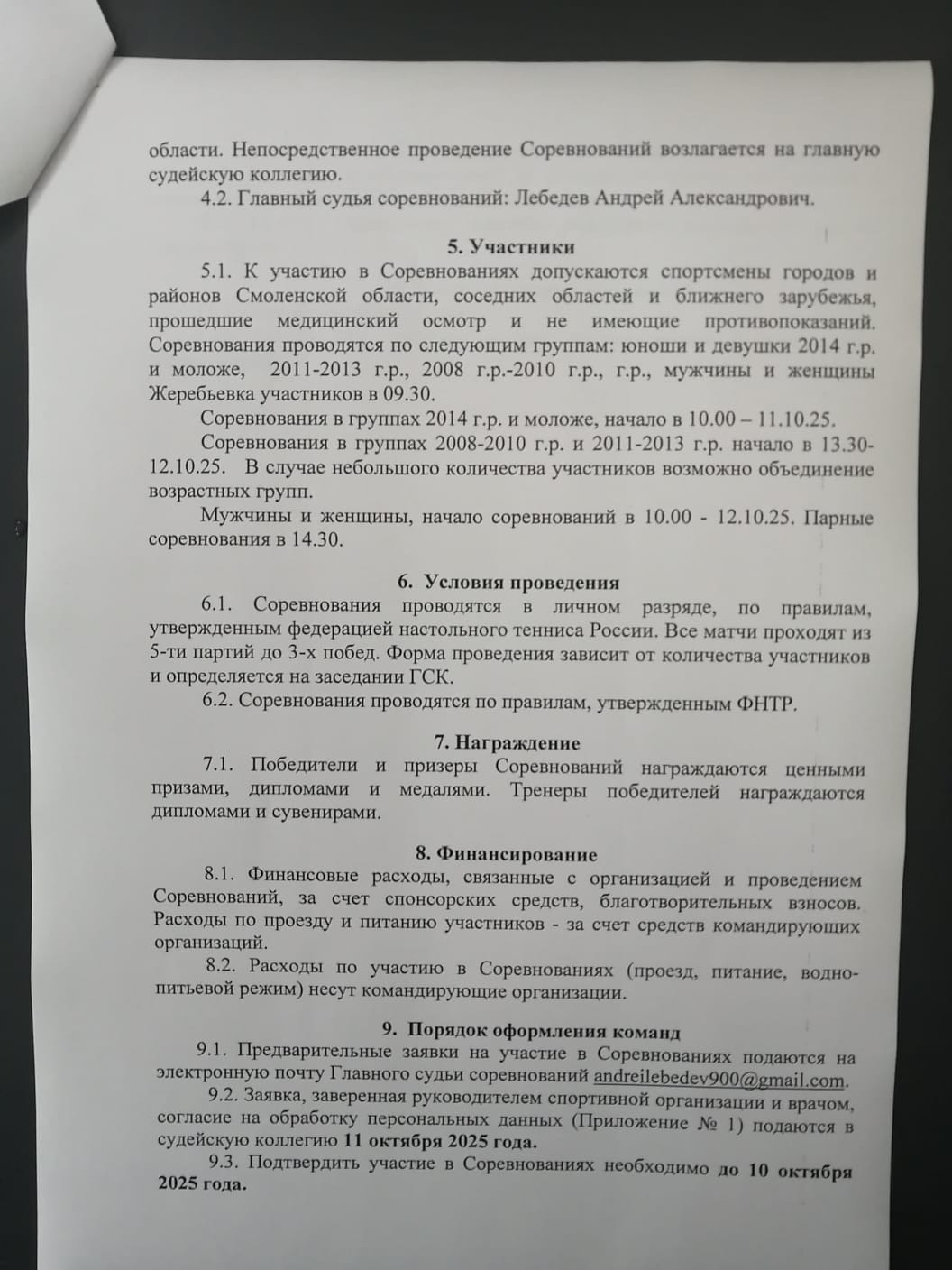 📅 11-12 октября 2025 г. в г. Вязьма состоятся традиционные соревнования по настольному теннису памяти В. Я. Казакова.🏓 11 октября - дети.