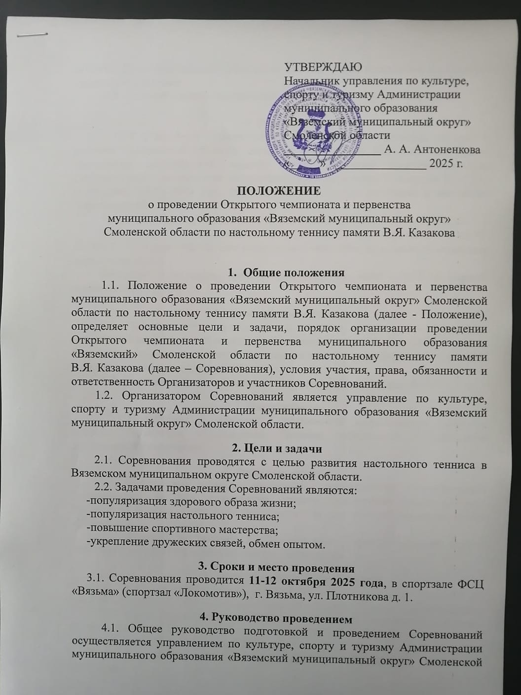 📅 11-12 октября 2025 г. в г. Вязьма состоятся традиционные соревнования по настольному теннису памяти В. Я. Казакова.