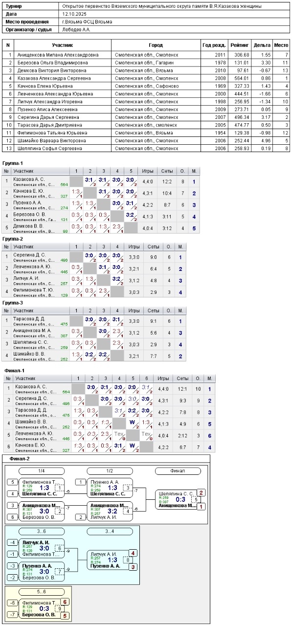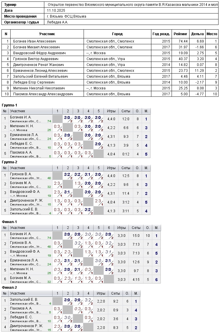 📅 11-12 октября в г.Вязьма состоялся традиционный турнир посвященный памяти В.Я.Казакова.