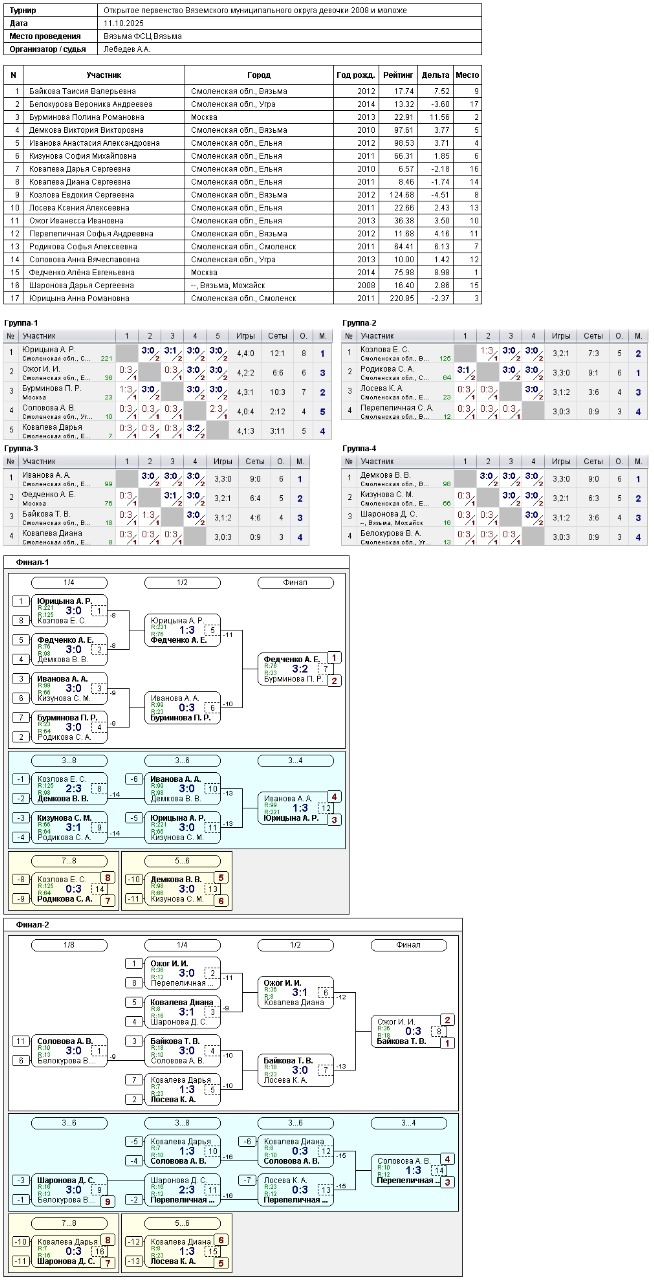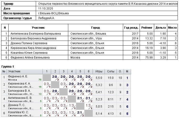 🏓 2011 г.р. и моложе