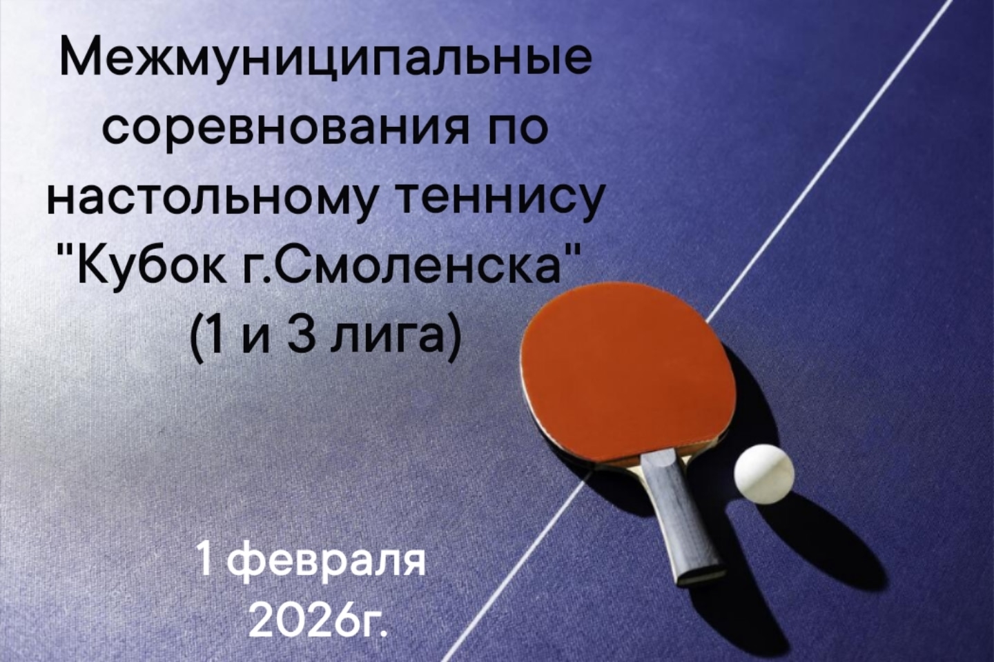 📅1 февраля, воскресенье 2026 г. состоятся Межмуниципальные соревнования по настольному теннису "Кубок г.Смоленска" (1 и 3 лига)